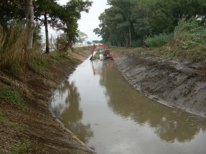 Canale Elena: lavori di trinciatura sponde ed espurgo alveo con escavatore - ml 1.400 eseguiti ad Ottobre 2015